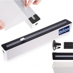 A hosszú vágósín tolható éllel gyors és egyenes leválasztást tesz lehetővé fóliából vagy papírból – biztonságosan, csipkézett szélek nélkül.