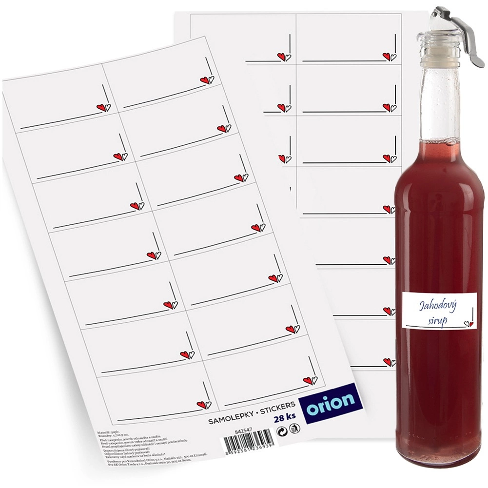 Praktikus készlet 28 öntapadós címkéből befőttes üvegekhez, palackokhoz és tárolódobozokhoz visszafogott szívmintával. A laminált papírból készült címkék könnyen felragaszthatók, jól tapadnak, és jól olvasható felületet biztosítanak a tartalom, a dátum vagy a név feltüntetéséhez. Remek választás a konyha és a kamra rendszerezéséhez, miközben elegáns és dekoratív hatást keltenek.