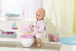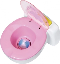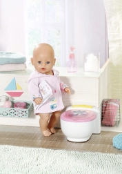 A Baby Born varázslatos WC egy interaktív játék, amely segít a gyerekeknek szórakozva megismerkedni a mindennapi rutinokkal. Amikor a Baby Born baba ráül a WC-jére, vicces hangok kísérik, mintha valóban vizelne vagy tapsolna. Emellett, ha a baba kakil, színes, csillogó kakit talál a WC-ben. Itt az ideje lehúzni!
