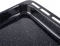 A minőségi zománcozott felület karc- és magas hőmérséklettel szemben ellenálló, egyenletes sütést és egyszerű tisztítást biztosít.