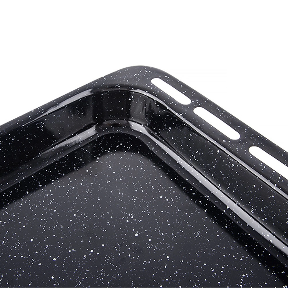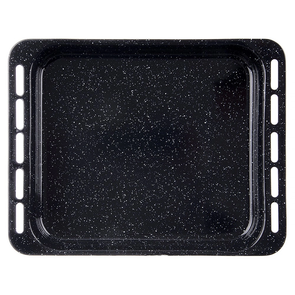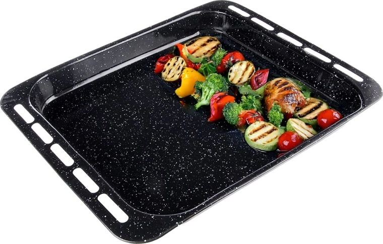 A tepsi külső méretei 45,5 × 36 × 5 cm, a belső méretek 38 × 34 × 5 cm – így elegendő helyet kap a családi adagokhoz és a nagyobb pitékhez is. A sima zománc megkönnyíti a tisztítást és mosogatógépben is mosható, emellett karc- és hőálló gázzal és árammal működő sütőkben egyaránt.