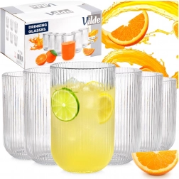 Fedezze fel a sokoldalú, függőleges bordázású poharakat, amelyek biztos fogást és modern megjelenést nyújtanak. Minden pohár 400 ml űrtartalmú, így tökéletes vízhez, limonádéhoz, jeges teához, gyümölcsléhez és kevert italokhoz. Az átlátszó üveg szépen kiemeli az ital színét, valamint a citrus- és fűszernövény-díszítést.