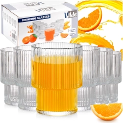 Fedezze fel az univerzális poharakat időtálló, bordázott dizájnnal, amelyek minden asztalon remekül mutatnak. Minőségi, vastag üvegből készültek, jól kézben tarthatók, és 190 ml-es űrtartalmuknak köszönhetően tökéletesek vízhez, gyümölcslevekhez, házi limonádéhoz és jeges teához. Egyszerű formájuk könnyen kombinálható más edényekkel.