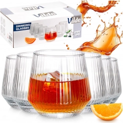 Elegáns, hatdarabos, 350 ml űrtartalmú pohárkészlet bordázott felülettel a biztos fogásért és modern megjelenésért. Kiváló minőségű, vastag üvegből készült, ideális vízhez, limonádéhoz, koktélokhoz és whiskyhez. A poharak mosogatógépben moshatók, és tökéletesek a mindennapi otthoni és vendéglátóipari használatra.