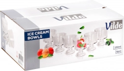Elegáns, hat darabos üveg fagyikehely-készlet 290 ml űrtartalommal, ideális fagylalt és desszertek tálalásához. Tartós átlátszó üveg, stabil talp és mosogatógépben könnyen tisztítható kialakítás – tökéletes választás otthonra és vendéglátásba egyaránt.