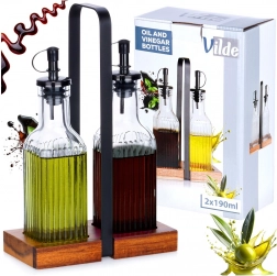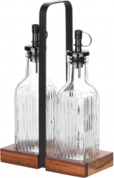 Gondoskodjon az áttekinthető és higiénikus fűszertárolásról. Két átlátszó, rovátkázott üvegpalack 190 ml űrtartalommal stabil akácfa állványon kap helyet fekete fém fogantyúval a könnyű hordozáshoz. Mindegyik palack praktikus adagolóval rendelkezik, amely lassítja az átfolyást, és segít pontos mennyiséget tölteni csepegés és kilöttyenés nélkül.