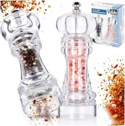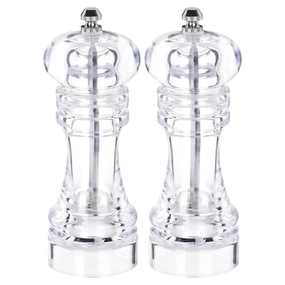 Fedezze fel a két akril őrlőből álló praktikus szettet, amely a strapabíró, átlátszó kivitelnek és a megbízható kerámia mechanizmusnak köszönhetően hosszú élettartamot és állandó teljesítményt nyújt. Őröljön borsot, sót és más fűszereket közvetlenül a tányérra, és élvezze a maximális ízt és illatot a friss őrlésnek köszönhetően.