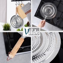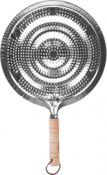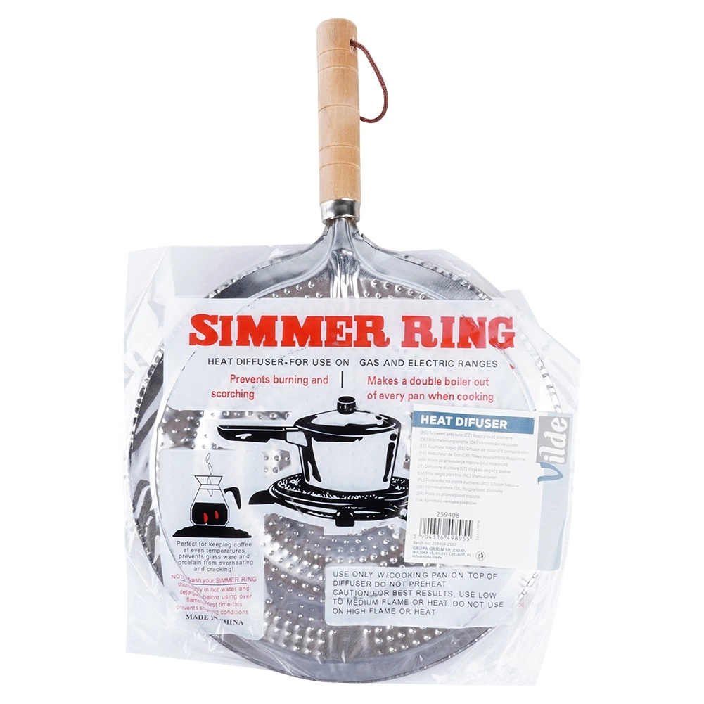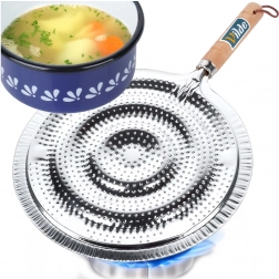 Praktikus fém lángelosztó gáztűzhelyekhez 21 cm átmérővel és 32,5 cm teljes hosszal. Biztosítja az egyenletes hőelosztást, védi a üveg- és kerámia edényeket a közvetlen lángtól és a repedéstől, valamint kényelmes fa nyéllel és akasztófüllel rendelkezik.