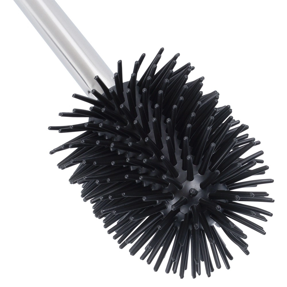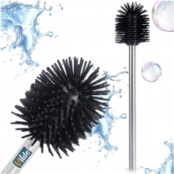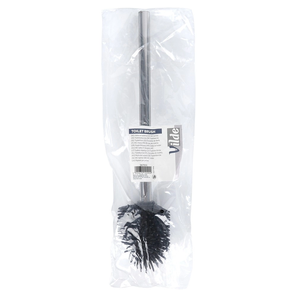 Praktikus szilikon WC-kefe póthead 35 cm hosszúsággal és fekete fejjel a higiénikus és hatékony toalett tisztításához. A rugalmas szilikon sörték könnyen leöblíthetők, nem tapad rájuk a szennyeződés, és hosszú élettartamot biztosítanak. Az rozsdamentes acél nyél kényelmes fogást ad, és a legtöbb szabványos WC-kefetartóhoz illeszkedik.