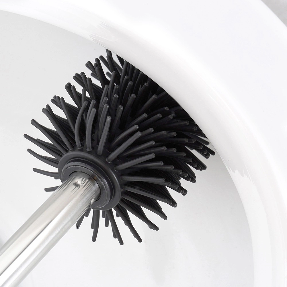 Az ergonomikus rozsdamentes acél nyél ezüst színben biztos fogást és kényelmes manőverezést kínál a perem alatt is. A univerzális méretnek köszönhetően a legtöbb hagyományos WC-kefetartóval kompatibilis, és különböző stílusú fürdőszobákba illik.