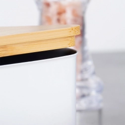 Ez a praktikus vajtartó ideális a vaj hűtőben való tárolásához és az elegáns asztali tálaláshoz. A masszív, porszórt fehér acél kivitel és a természetes bambusz fedél modern, időtálló megjelenést teremt, amely bármilyen terítékkel harmonizál.