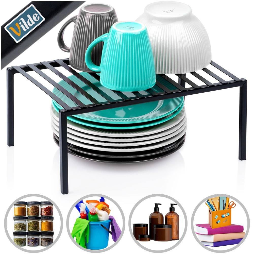 Megosztja a polc vagy a munkalap magasságát, így alul a tányérok, felül pedig a bögrék vagy tálak átláthatóan elhelyezhetők.