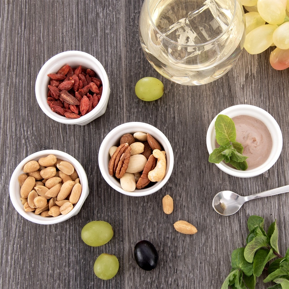 A 40 ml-es űrtartalom és a 6 × 6 × 3,5 cm-es méret ideális kis adagokhoz, mártogatókhoz és fűszerekhez. A tálkák könnyen tárolhatók és remekül mutatnak az asztalon.