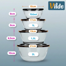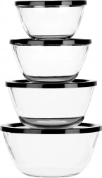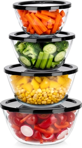 Az üvegtálak fedőkkel ideálisak előkészítéshez, tálaláshoz és tároláshoz egyaránt. A tiszta üvegnek köszönhetően mindig látható a tartalom, míg a fekete fedők segítenek megőrizni a frissességet és megakadályozzák a szagok terjedését a hűtőben.