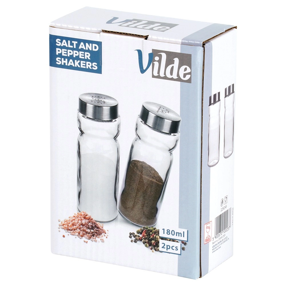 Fedezze fel a praktikus VILDE só- és borsszóró készletet kiváló minőségű, vastag üvegből, rozsdamentes hatású fém fedelekkel. Az átlátszó testnek köszönhetően mindig látható a fűszer mennyisége, így időben utántölthető. A fedél adagolónyílásai egyenletes szórást tesznek lehetővé, és megakadályozzák a túlsózást vagy a túlzott fűszerezést.