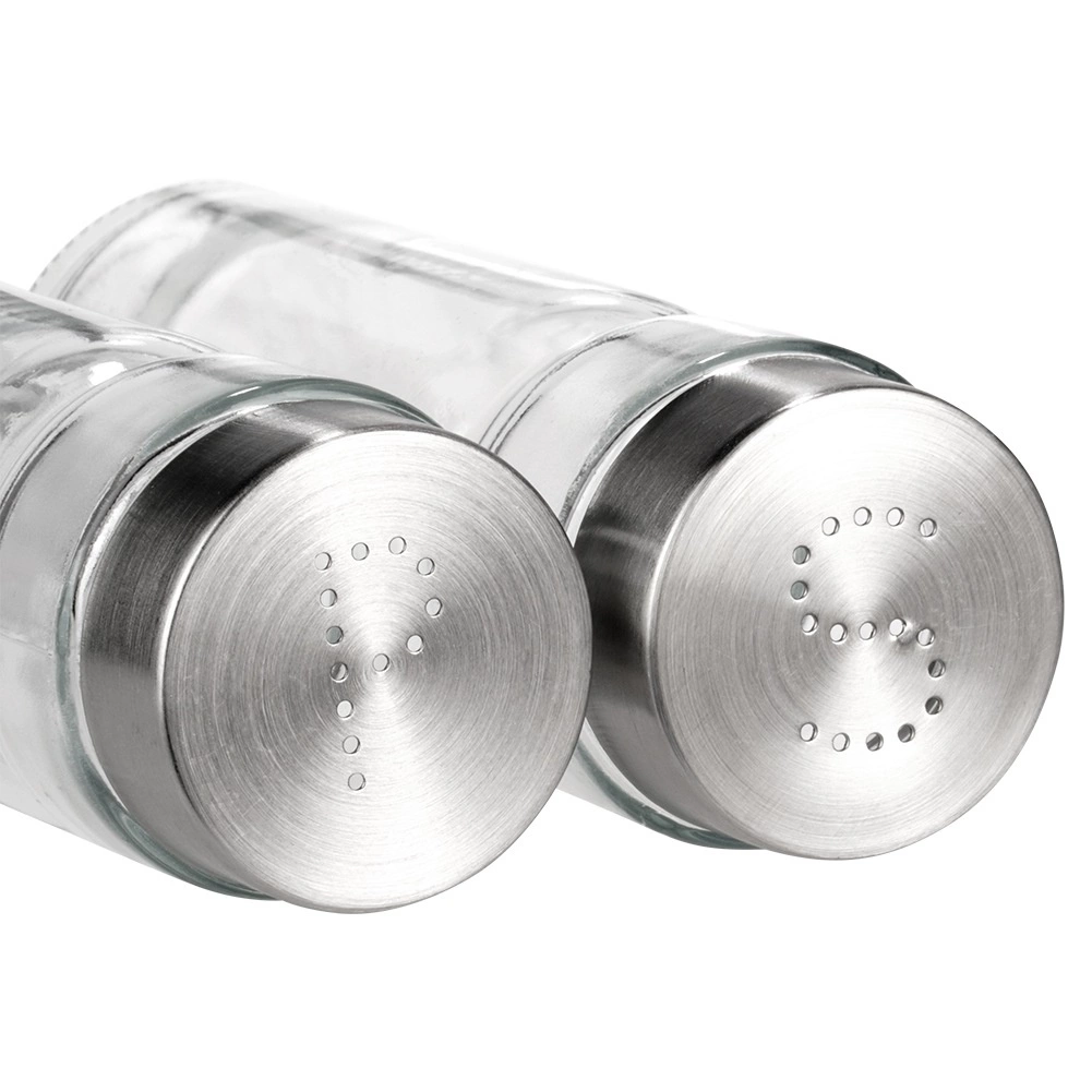 A finom nyílásokkal ellátott fém fedelek egyenletes szórást biztosítanak sóhoz és borshoz is, így elkerülhető az ételek túlsózása és a felesleges pazarlás.