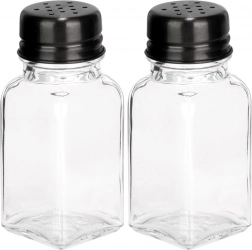 Praktikus két darabos fűszertartó szett – sószóró és borsszóró – átlátszó, vastag üvegből fekete fém tetőkkel. Minden tartó 80 ml űrtartalmú, mérete 4 × 4 × 9,5 cm. A perforált kupakoknak köszönhetően könnyedén és pontosan adagolhatja a fűszereket, megőrzi azok frissességét és aromáját, és mindig kéznél lesznek, otthon és a vendéglátásban egyaránt.