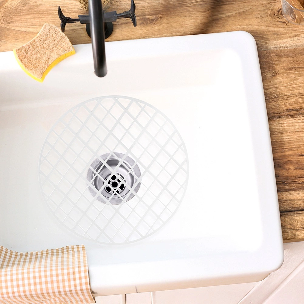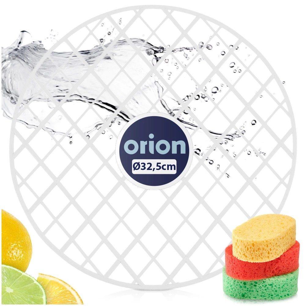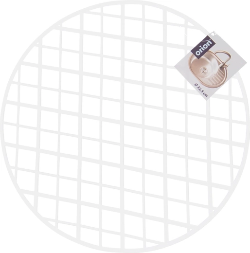 Praktikus, 32,5 cm átmérőjű kerek mosogatóalátét, amely megóvja a mosogató alját a karcolásoktól és ütődésektől. Tartós műanyagból készült, csúszásgátló felülettel, perforációval a víz szabad lefolyásához, és akár 80 °C-os hőmérsékletnek is ellenáll. Az univerzális fehér szín a legtöbb konyhába illik.