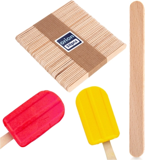 Praktikus készlet 50 fa jégkrém pálcikából, 9,5 × 1 × 0,2 cm méretben házi készítésű jégkrémekhez, sorbetekhez és desszertekhez. A bükfából készült pálcikák élelmiszerrel érintkezve biztonságosak, erősek és tartósak. Kreatív alkotáshoz, iskolába és óvodába is kiválóak. Eredeti ORION márkatermék, európai szabványok szerint gyártva.