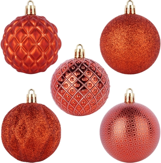 Varázsoljon otthonába meghitt karácsonyi hangulatot az elegáns piros gömbkészlettel. A minőségi műanyag törhetetlen kivitele gondoskodik a biztonságos és tartós használatról, miközben az 5 féle minta fényes, matt és csillogó felületei mélységet és stílust adnak a dekorációnak.