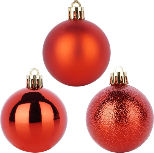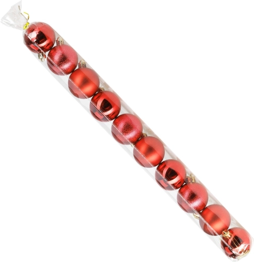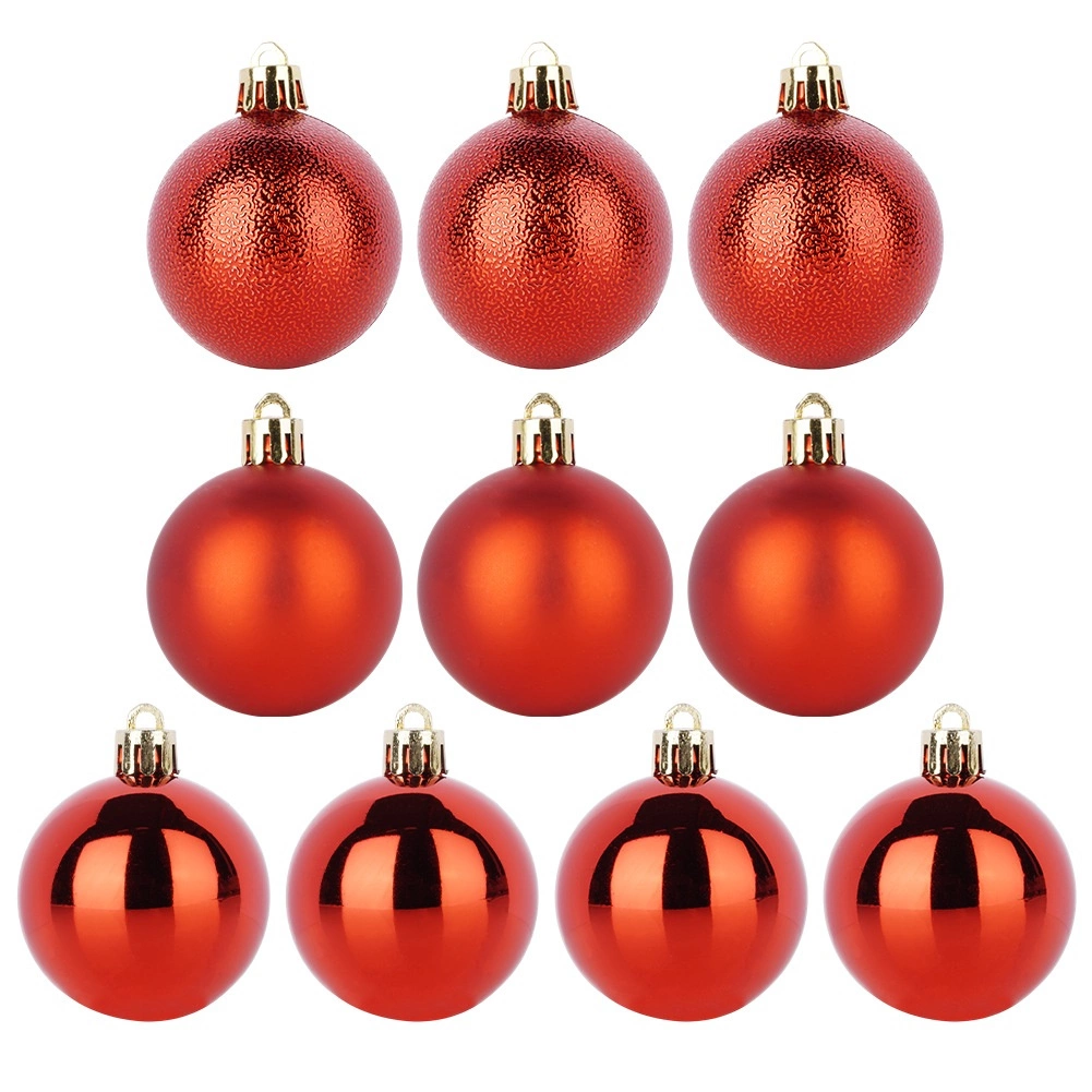 10 darab piros karácsonyi gömbből álló készlet klasszikus fényt és varázslatos hangulatot kölcsönöz ünnepi dekorációdnak. Matt, fényes és strukturált felületű díszeket tartalmaz 5 cm átmérővel, amelyek remekül illenek a fára, koszorúkra és ünnepi kompozíciókra. Törhetetlen anyagból készült – biztonságos gyermekek és háziállatok mellett is.