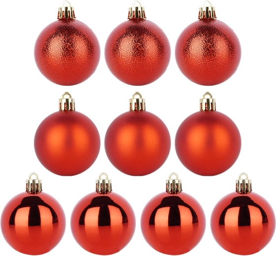 Vidd haza az ünnepi hangulatot ezzel a 10 darabos, elegáns piros színű, törhetetlen karácsonyi gömbkészlettel. A háromféle felület kombinációja – 3× matt, 4× fényes és 3× dombornyomott struktúrájú – mélységet és stílust ad a fának. Tartós anyagának köszönhetően eséskor sem törik, így ideális családoknak, kisgyermekekkel és házi kedvencekkel.