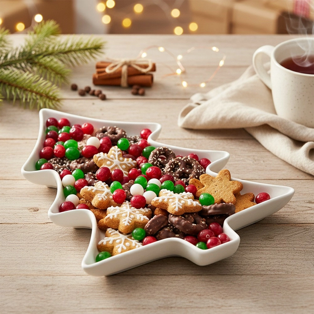• Stílusos ünnepi design: eredeti fenyőfa alak, dekorációként és funkcionális szervírozótányérként egyaránt.