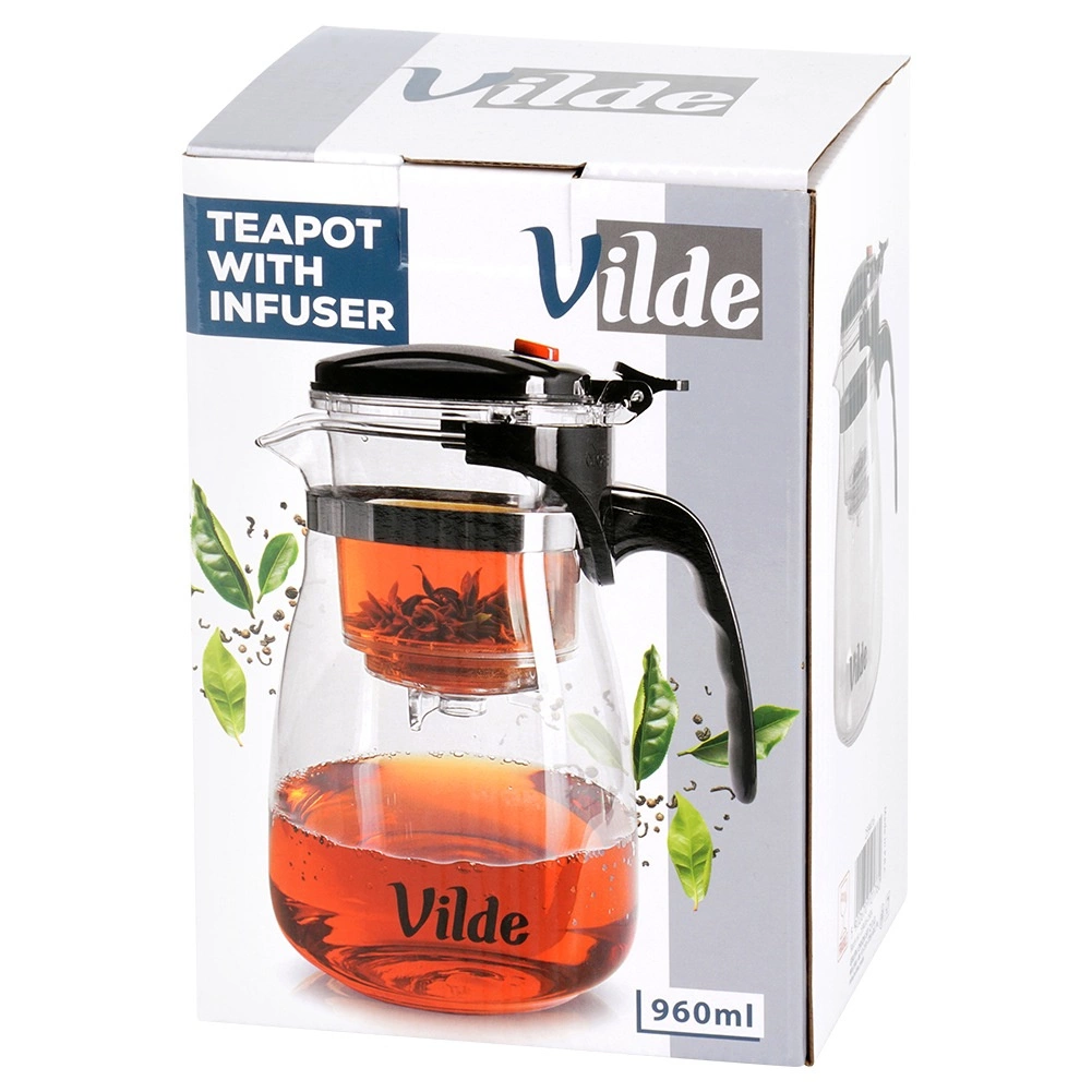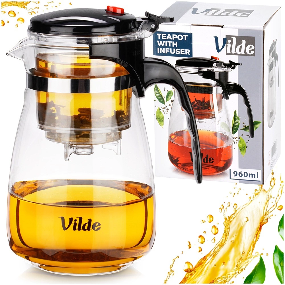 Praktikus üvegkancsó beépített leeresztős áztatóval szálas teákhoz, gyógynövényekhez és gyümölcsös keverékekhez. A boroszilikát üveg -20 °C és 120 °C közötti hőmérsékletnek ellenáll, a tetőn lévő vezérlőgomb a kivonatot az alsó edénybe engedi, így pontosan időzíthető a főzet erőssége. A 960 ml-es űrtartalom ideális otthoni felszolgáláshoz és baráti összejövetelekhez.