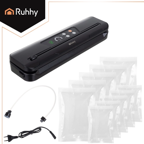 A RUHHY vákuumfólia-hegesztő megkönnyíti az otthoni élelmiszer-csomagolást, csökkenti a pazarlást és meghosszabbítja a húsok, sajtok, zöldségek és pácolt ételek frissességét. Az erős 80 kPa-os vákuumpumpa 110 W teljesítménnyel és 9 l/perc átfolyással néhány másodperc alatt professzionális, légmentes hegesztést készít. Az átlátható LED jelzők és az egyszerű kezelőszervek minden alkalommal megbízható eredményt biztosítanak.