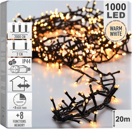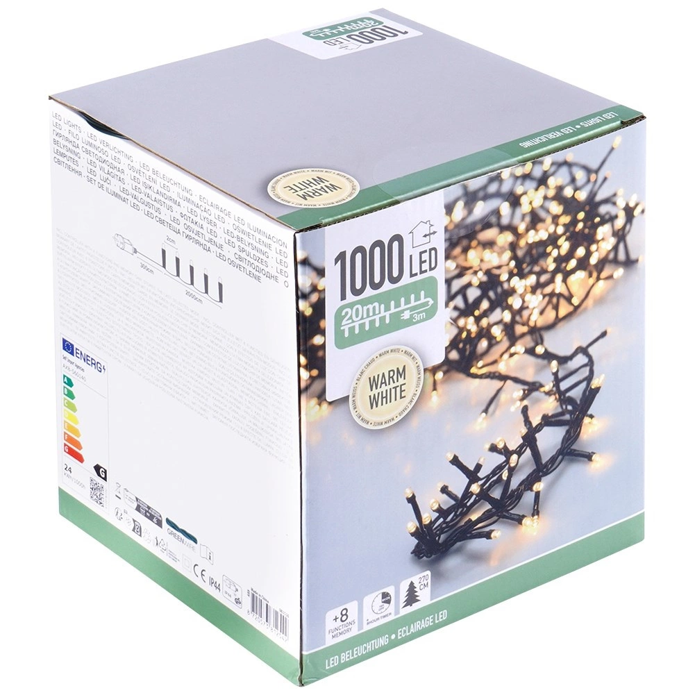 Teremts felejthetetlen ünnepi hangulatot a sötétzöld kábellel szerelt hosszú fényfüzérrel, amely tökéletesen beleolvad a tűlevelek közé. A füzér hálózatról működik, így állandó és megbízható fényerőt biztosít elemcsere nélkül. Tökéletes karácsonyfa, ablak, kandalló, korlát és homlokzat díszítésére.