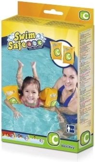 Swim Safe felfújható karúszók sárga, 2 kamrás, 25x15 cm, dobozban 12x19,5 cm, 3–6 éveseknek