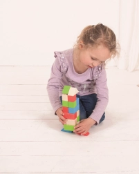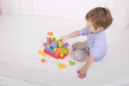 A Bigjigs Baby fa építőkészlet egyedi kombinációt kínál fa kockák és műanyag összekötők segítségével, amelyek lehetővé teszik szilárd és stabil építményeket. A különböző formájú és színes kockák ideálisak kis kezek számára.