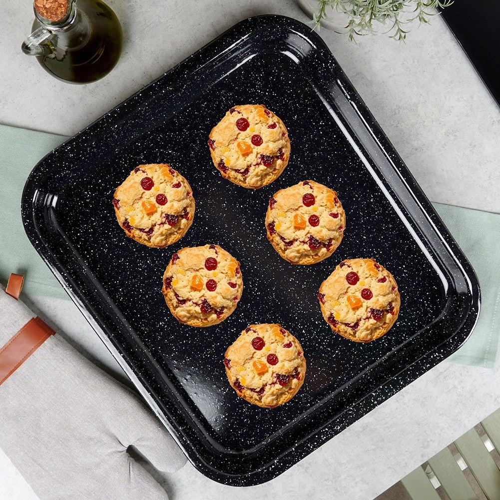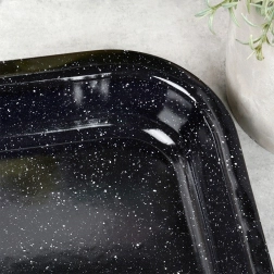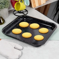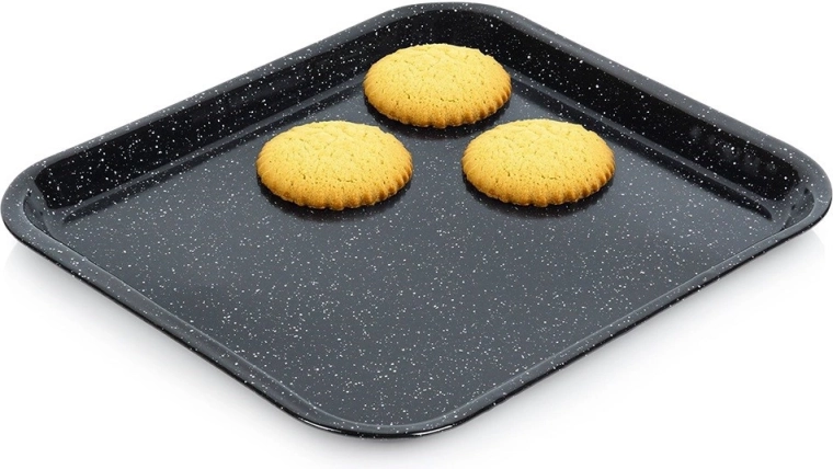 Fedezze fel megbízható konyhai segítőt – a minőségi acélból készült, elegáns fekete színű zománcozott sütőlemezt. A zománc egészségre ártalmatlan, allergiások számára is megfelelő. A lemez kiválóan vezeti a hőt, az ételek nem égnek le, a karbantartás pedig rendkívül egyszerű.