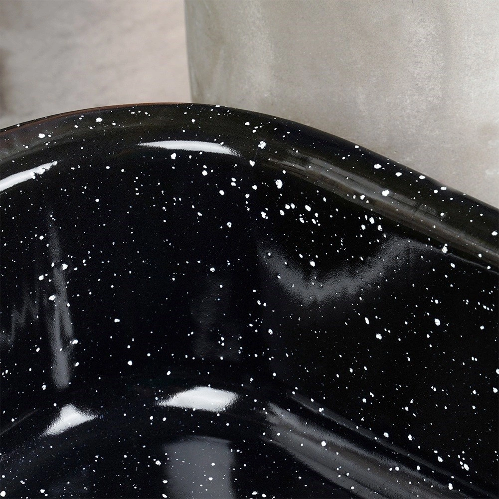 A tepsi gáz- és elektromos sütőkben egyaránt használható, sima felülete révén könnyen tisztítható – az ételek nem tapadnak le, az edény mosogatógépben is mosható. A zománcozott edények hagyományos gyártása apró esztétikai eltéréseket eredményezhet (pl. enyhe egyenetlenségek vagy nem teljesen szimmetrikus minta), amelyek azonban nem befolyásolják a minőséget vagy a funkcionalitást, és kiemelik a kézműves kidolgozást.