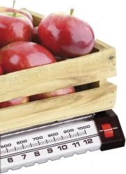 A áttekinthető 0–12 kg-os skála 10 g-os lépésekben (kiemelt értékek 100 g-onként) pontos eredményeket nyújt főzésnél és sütésnél. A minőségi fémből és tartós műanyagból készült konstrukció stabilitást és könnyű tisztítást garantál. Azoknak is megfelelő, akik adagokat és tápanyagbevitelt szeretnének kontrollálni.