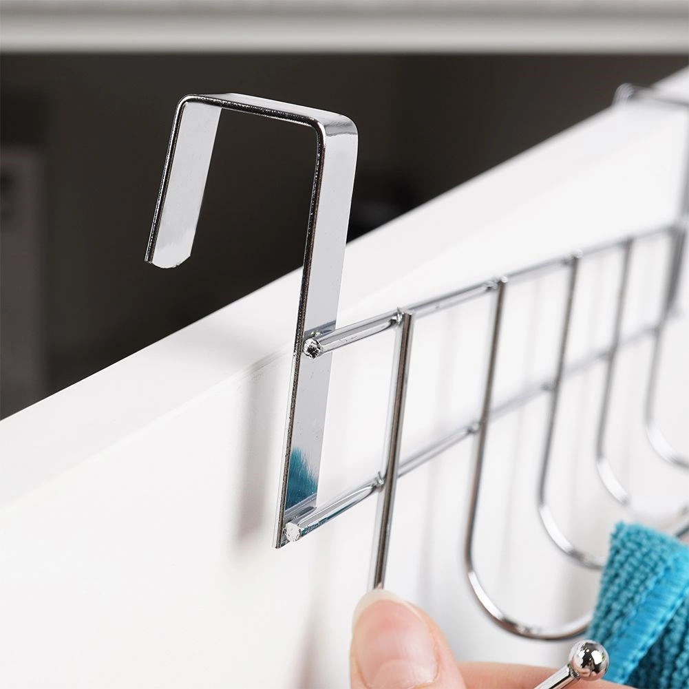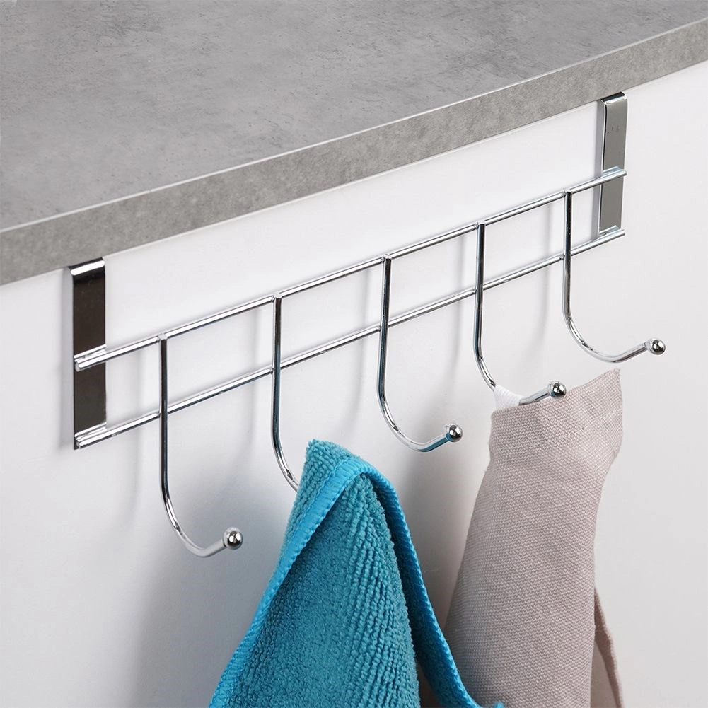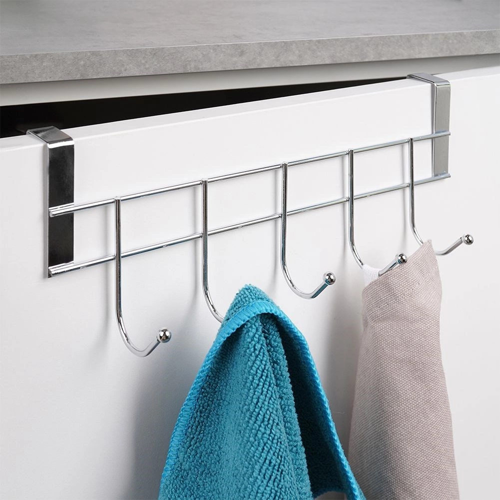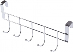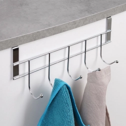 Praktikus, ajtóra akasztható fogas 5 akasztóval, amely helyet takarít meg és mindent kéznél tart. A masszív, krómozott szerkezetnek köszönhetően tartós és könnyen tisztítható. Fúrás nélkül – elég az ajtóra akasztani, legfeljebb 2 cm vastagságig. Ideális fürdőszobába, konyhába és előszobába törölközőkhöz, konyharuhákhoz és kiegészítőkhöz.