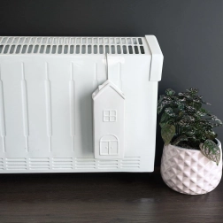 Elegáns kerámia radiátorra akasztható párásító házikó formában, 300 ml űrtartalommal, amely segít fenntartani az optimális páratartalmat a fűtési szezonban. A egyszerű fém akasztóra rögzítésnek és a könnyű használatnak köszönhetően elég csak vizet tölteni bele. A fehér máz és a dekoratív dizájn minden enteriőrhöz illik. A minőségi kerámia hosszú élettartamot és biztonságos működést biztosít.