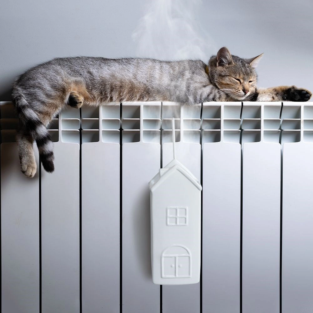 Praktikus és stílusos radiátoros párásító házikó formában, ideális segítség a száraz levegő időszakában fűtéskor. Csak töltsd meg vízzel és akaszd a radiátorra – az elpárolgó víz természetes módon növeli a helyiség páratartalmát, ami kellemesebb környezetet teremt a légzéshez és az alváshoz.