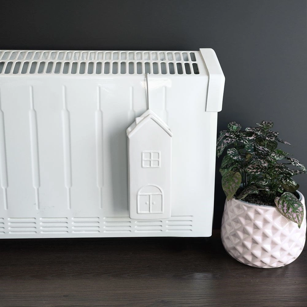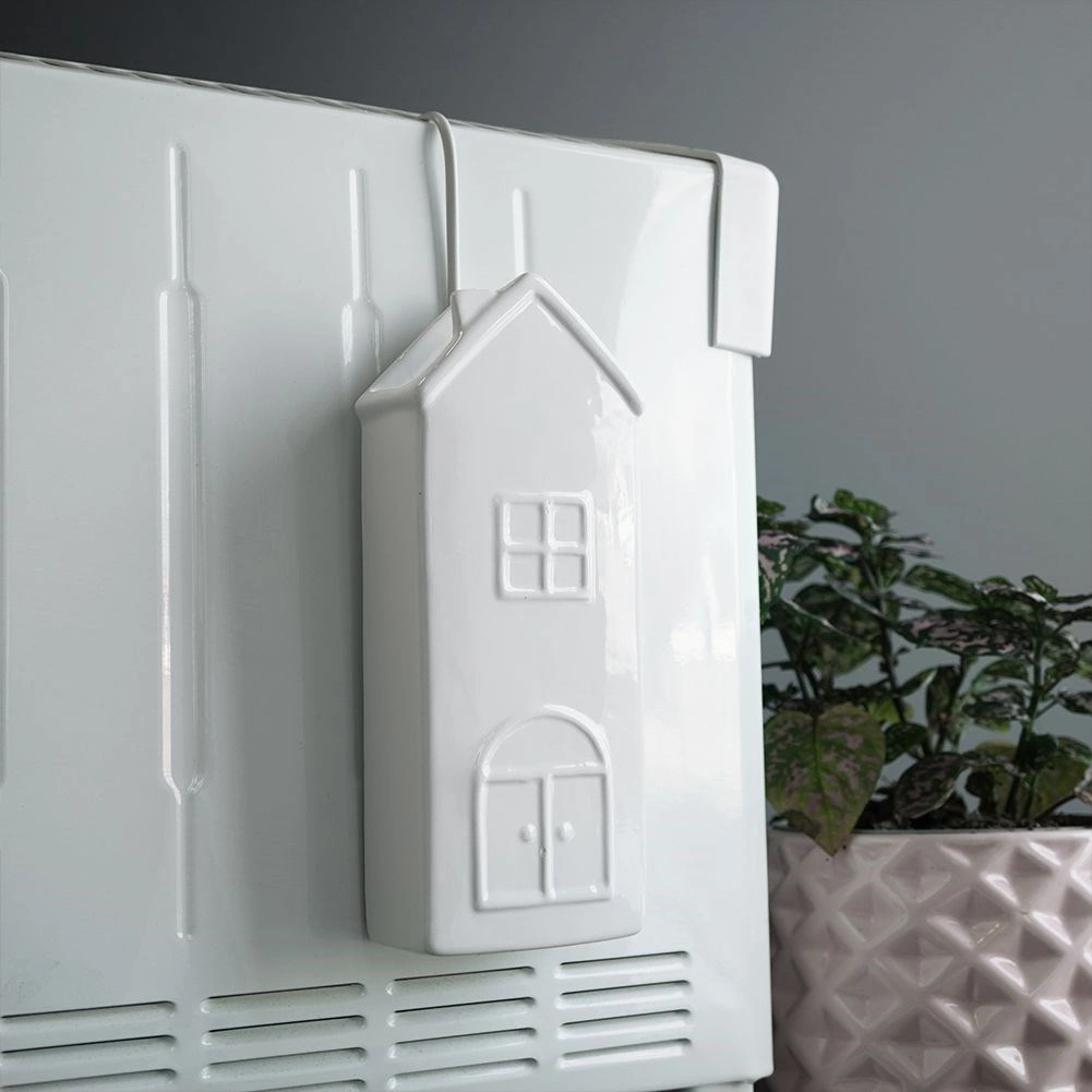 A minőségi kerámia fényes fehér mázzal rendkívül elegáns hatást kelt, és könnyen tisztán tartható. A minimalista házikó dekor a konyhába, nappaliba, hálóba és gyerekszobába is illik. Az egyszerű rögzítés fém akasztóval megkönnyíti a mindennapi használatot.