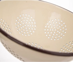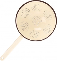 Elegáns barna–bézs kivitel dekoratív elemekkel, amely illik modern és rusztikus konyhákba is. A szűrő könnyen tisztítható, és mosogatógépben mosható. A nyélben lévő akasztónyílásnak köszönhetően egyszerűen felakasztható sínre vagy kampóra. A zománcozott edényeken előfordulhatnak apró gyártási egyenetlenségek (pl. kiemelkedések vagy enyhén aszimmetrikus minta), amelyek nem befolyásolják a minőséget vagy a funkcionalitást, és kiemelik a hagyományos megmunkálást.