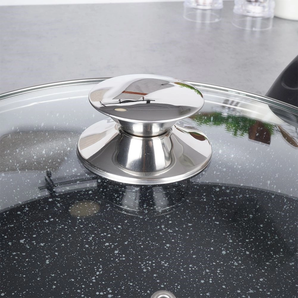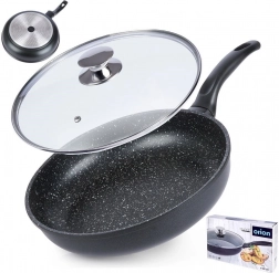 A vastagfalú, öntött alumíniumból készült serpenyő masszív felépítésével stabil hővezetést és hosszú élettartamot kínál. A kő/gránit tapadásmentes réteg megkönnyíti a sütést és párolást, csökkenti az olajfelhasználást és egyszerű tisztítást tesz lehetővé. Az üvegfedő gőzszeleppel segít megőrizni a nedvességet és ellenőrzés alatt tartani a főzés folyamatát.