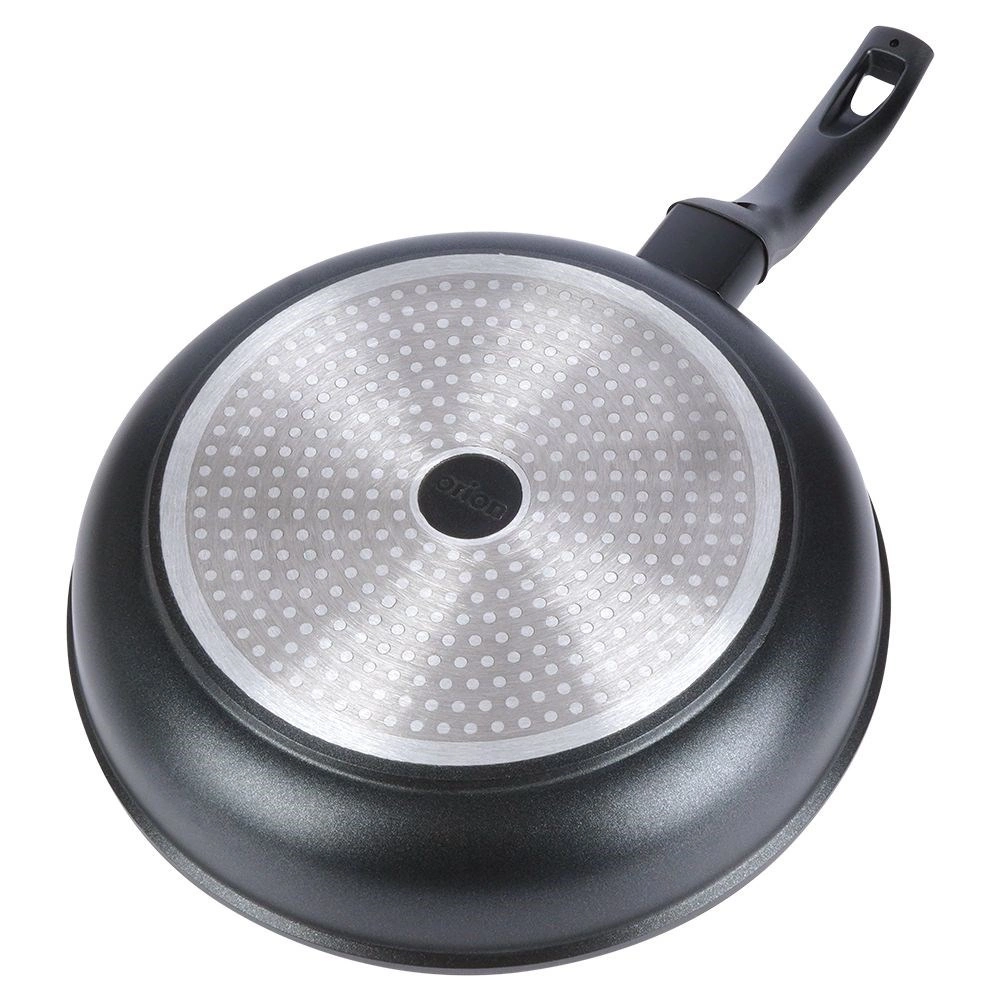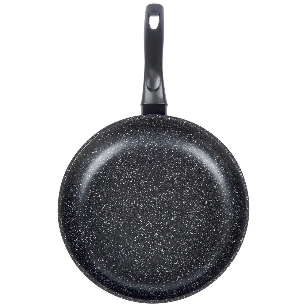 A speciális, PFOA- és PTFE-mentes kőhatású felület tökéletes tapadásmentességet, könnyű ételkioldást és gyors tisztítást biztosít – ideális tojás, hús és palacsinta sütéséhez minimális olajjal.