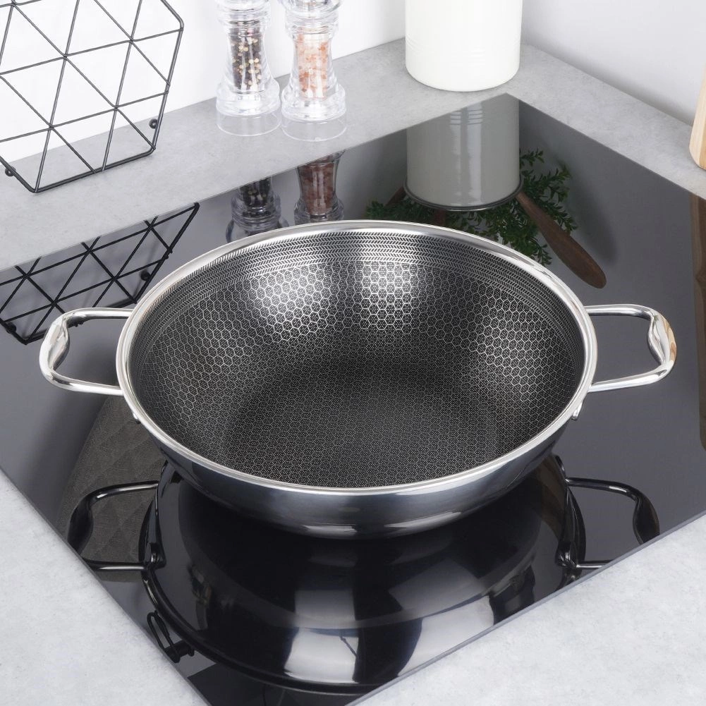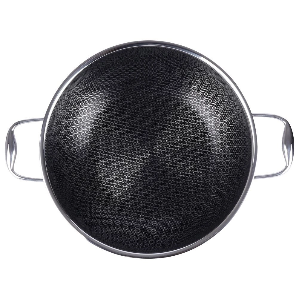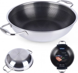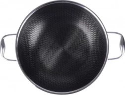 Időtálló rozsdamentes acél wok a COOKCELL HYBRID sorozatból, amely a rozsdamentes acél tartósságát ötvözi a modern, hatszögletű struktúrájú tapadásmentes technológiával. Kiváló hőátadásának köszönhetően ízletes, szaftos ételeket készíthetsz minimális olajjal, miközben az alapanyagok megőrzik természetes ízüket és tápanyagaikat.