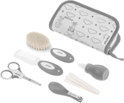 A puha végű orrszívó kíméletesen segít felszabadítani a légutakat. Az egész manikűrkészlet elegáns, praktikus textil tokban kapott helyet, így otthon és útközben is minden áttekinthetően kéznél van. A szett születéstől alkalmas, és BPA-mentes.