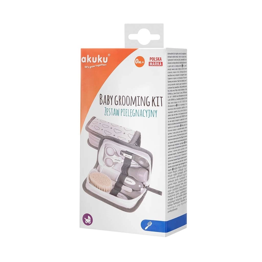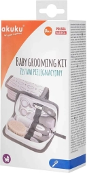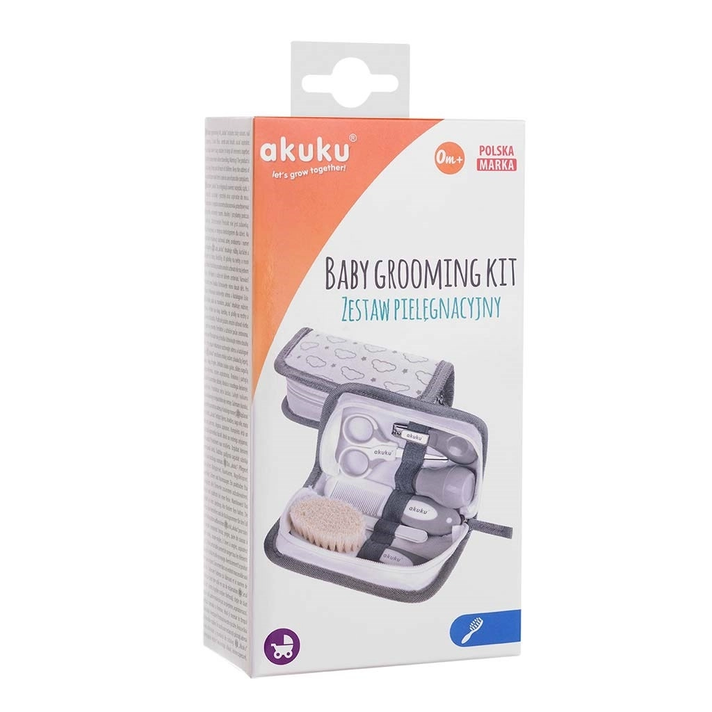 Az Akuku Hooligans komplett szett megkönnyíti a mindennapi babaápolást már az első napoktól. Minden eszközt a biztonság és kényelem jegyében terveztek – vékony, fém pengéjű, lekerekített hegyű olló a kíméletes vágáshoz, csipesz és reszelő a körmök sima befejezéséhez, a karcolás kockázata nélkül. A puha, természetes sörtéjű kefe gyengéden ápolja az érzékeny fejbőrt, míg a csúszásmentes nyelű fésű biztos fogást nyújt.