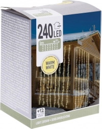 Stílusos, 2 m hosszú és 1,5 m magas fényfüggöny, amely beragyogja az otthont és a kertet. 240 meleg fehér LED-del, 12 világítási móddal memóriával, az elegáns megjelenést biztosító átlátszó kábelekkel és IP44 védelemmel a biztonságos kültéri használathoz. Ideális karácsonyi dekorációnak homlokzatra, erkélyre, korlátra vagy kandallóra.
