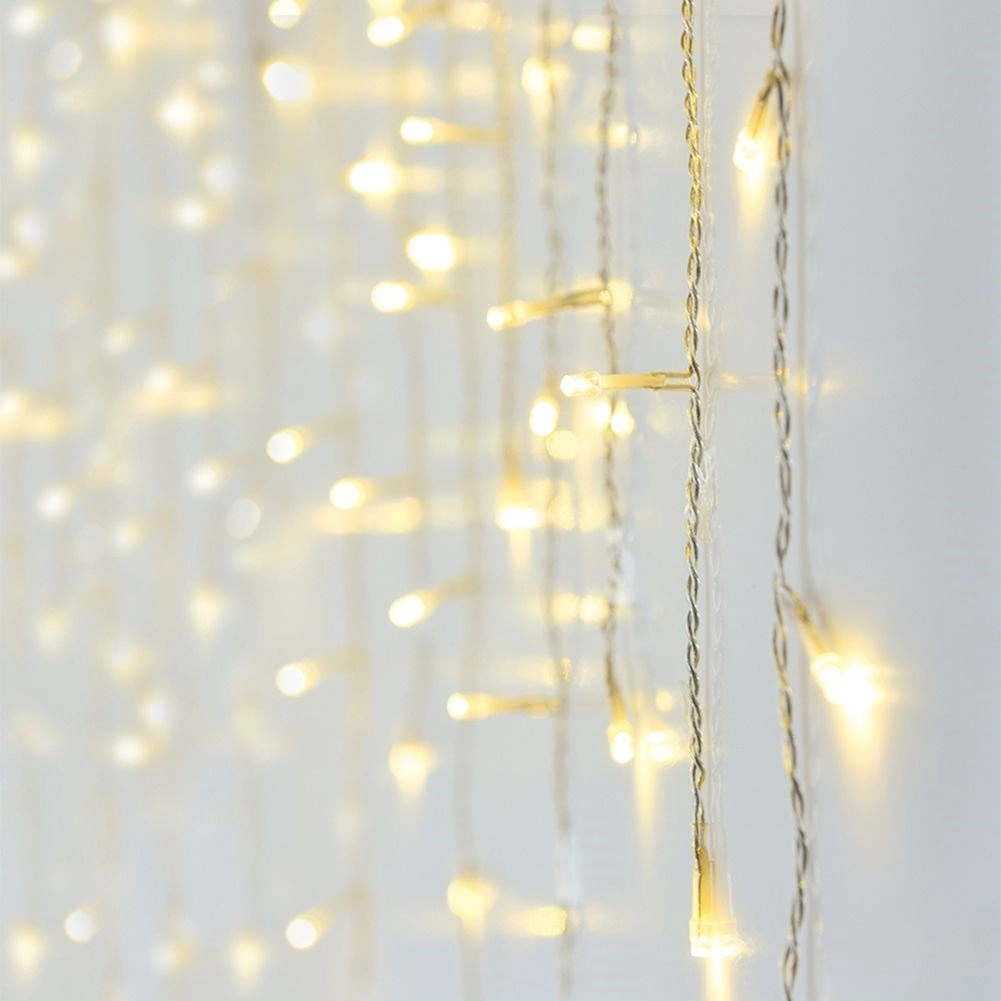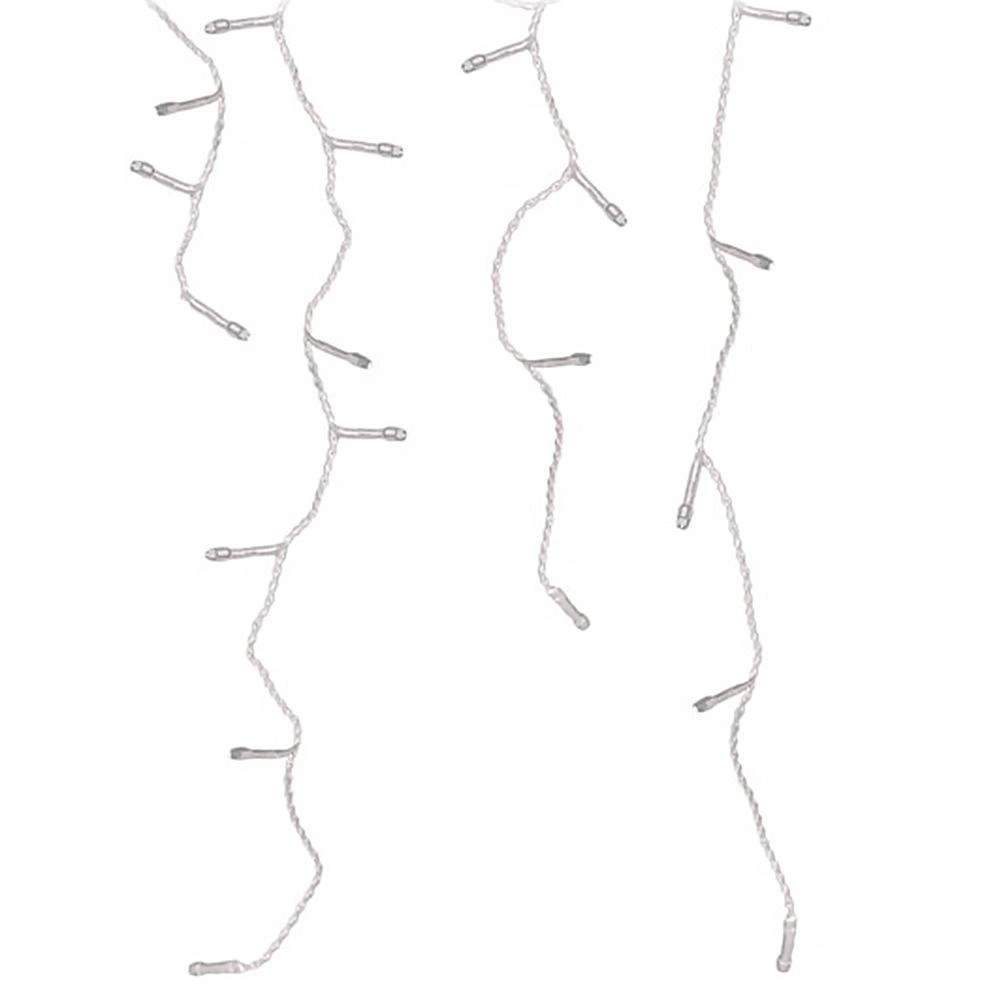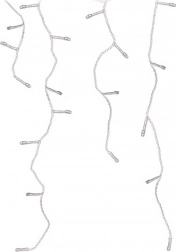 A függöny különböző hosszúságú lelógó szálakból áll, kb. 15 cm-es osztással, és folyamatosan világít. A tápegységtől 3 m hosszú betápkábel vezet, ami megkönnyíti az elhelyezést és a konnektorhoz csatlakoztatást. Az IP44 védelemnek köszönhetően időjárásálló, így kültéren is biztonságosan használható.