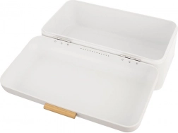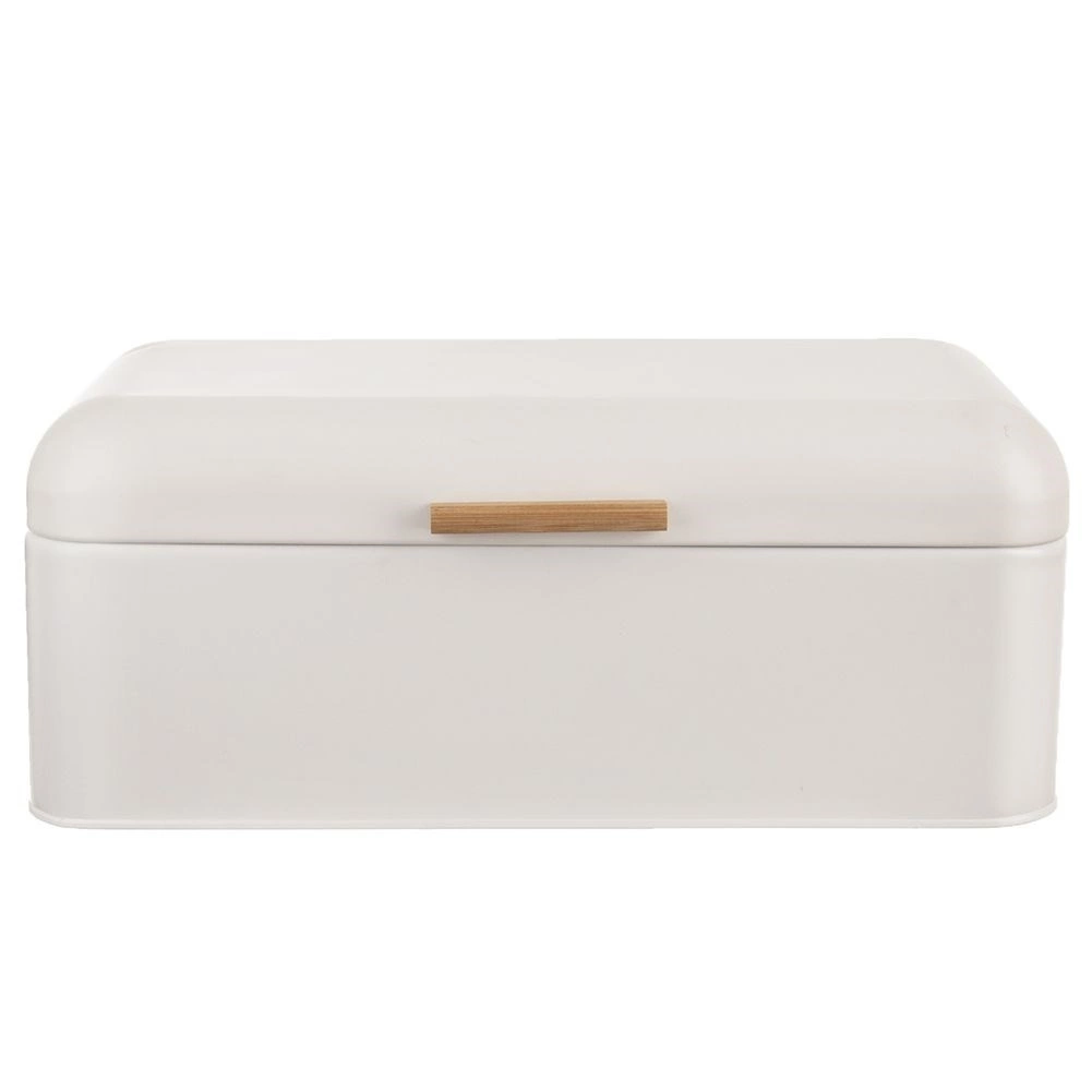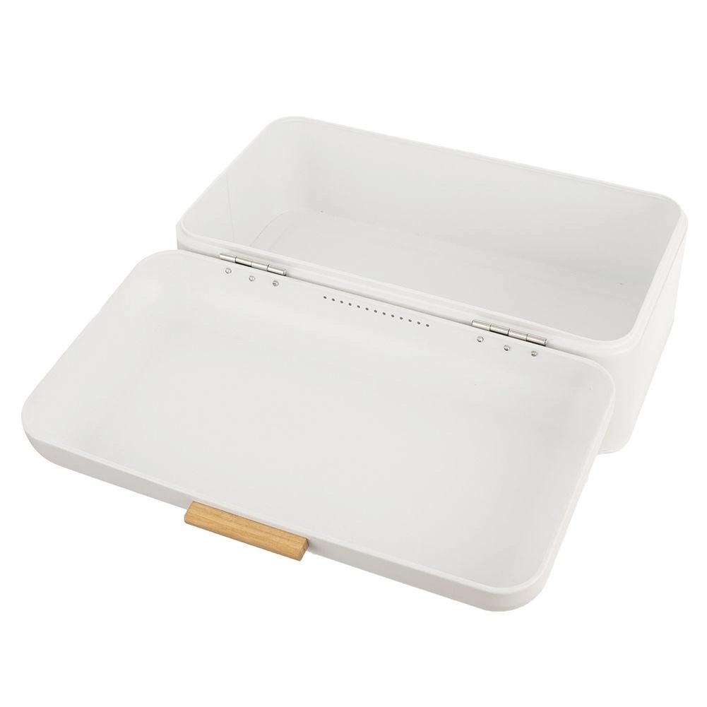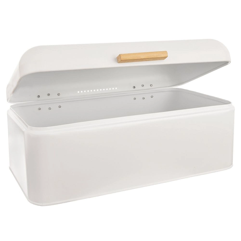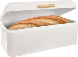 A fehér színű WHITELINE fém kenyértartó stílusos és funkcionális kiegészítő minden konyhába. A masszív fémkivitelnek és minőségi megmunkálásnak köszönhetően a pékáru tovább marad puha és ropogós. A zsanéros fedél felülről nyílik a kényelmes bambusz fogantyúval, megkönnyítve a mindennapi használatot.