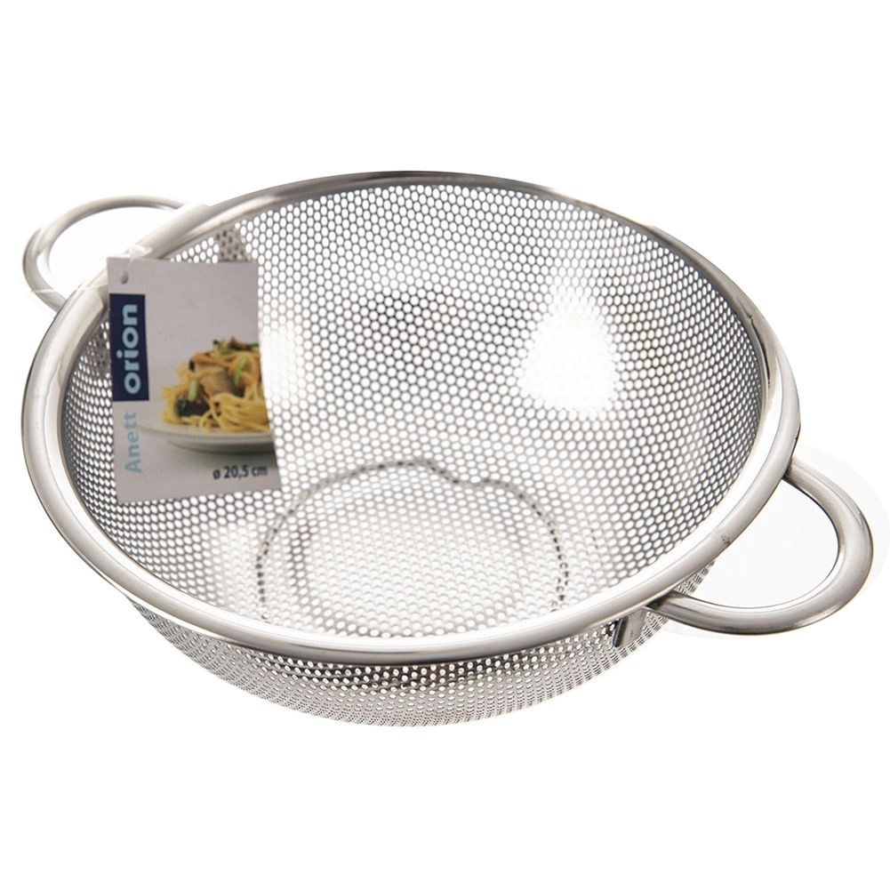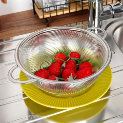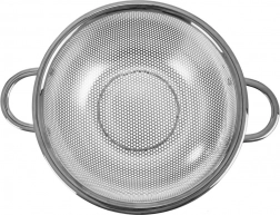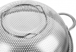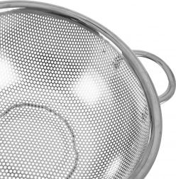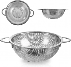 Univerzális, tál formájú konyhai szűrő mindennapos használatra. Ideális gyümölcs és zöldség mosásához, tészta és rizs szűréséhez. Rozsdamentes acélból készült elegáns ezüst színben, kényelmes fogantyúkkal, stabil lábakkal, és mosogatógépben mosható. ANETT sorozat.