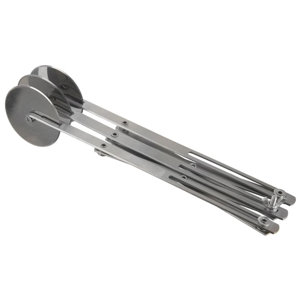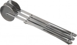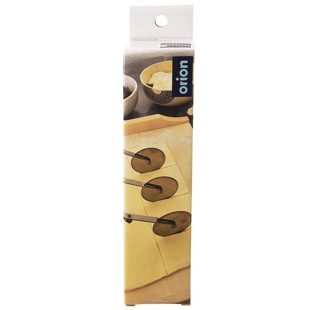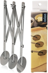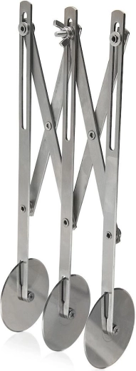A rozsdamentes acélból készült hármas ollós tésztavágó megbízható segítőtárs otthoni és profi sütéshez egyaránt. Három egyoldalas, sima tárcsa 5,5 cm átmérővel tiszta vágást biztosít a tészta szakadása és tapadása nélkül. A hosszú nyél biztos fogást és kényelmes vezetést nyújt.